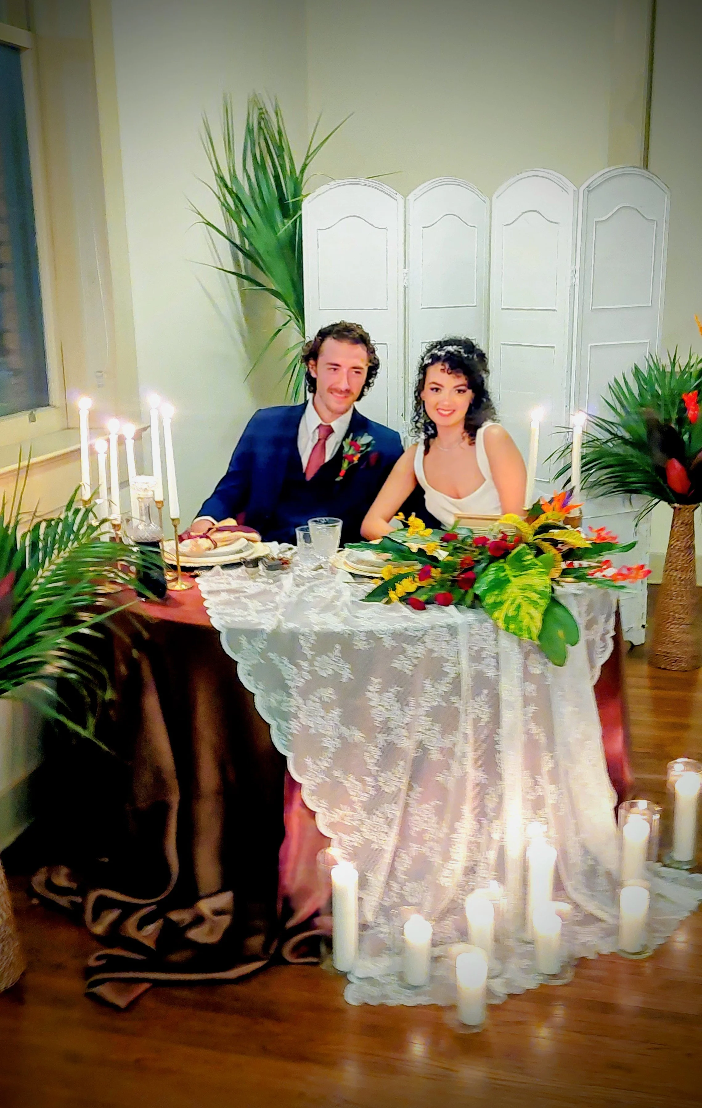 Tables, chairs, and black linens (the wedding packages are priced with your choice of color of rented linens).